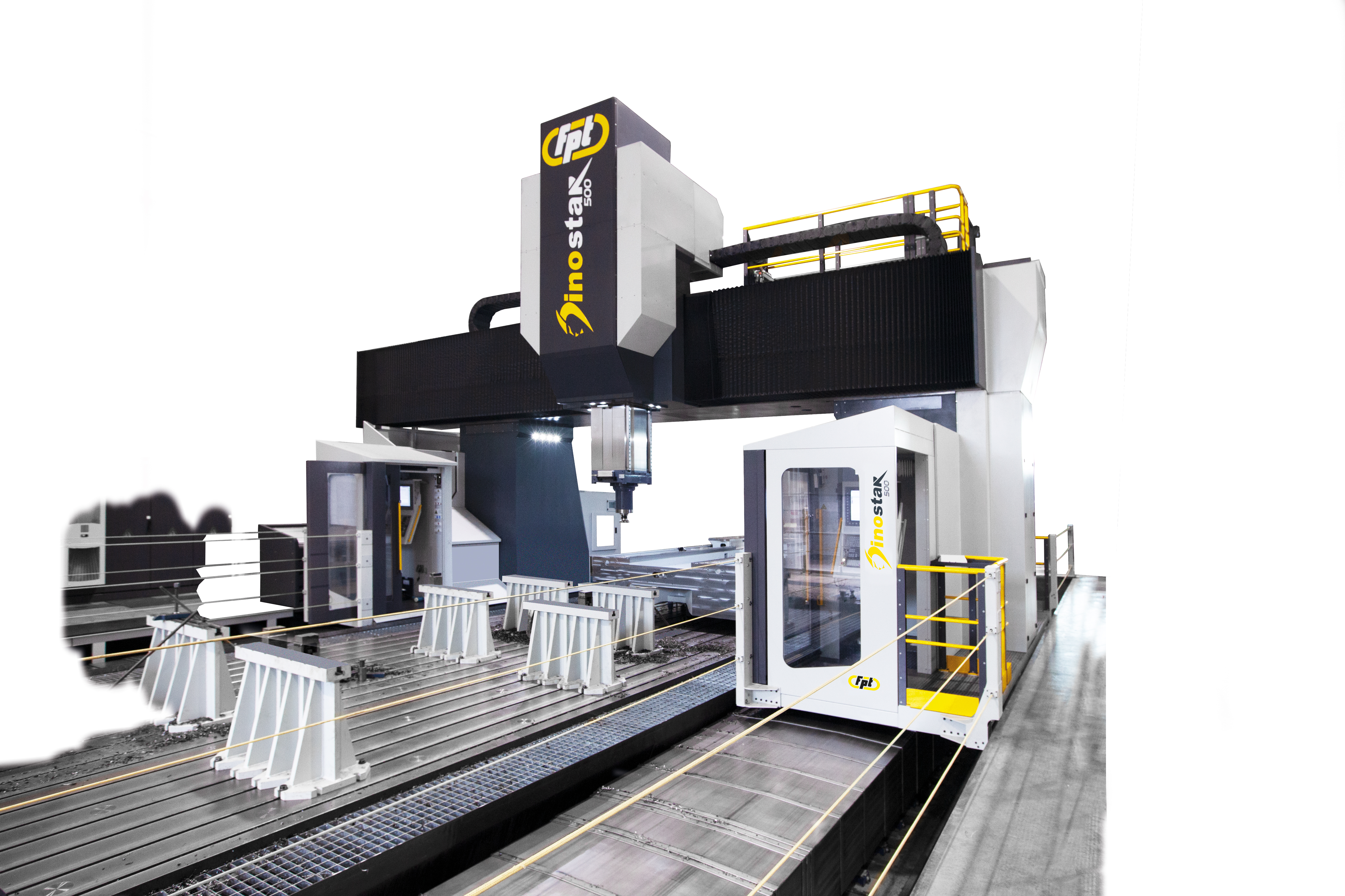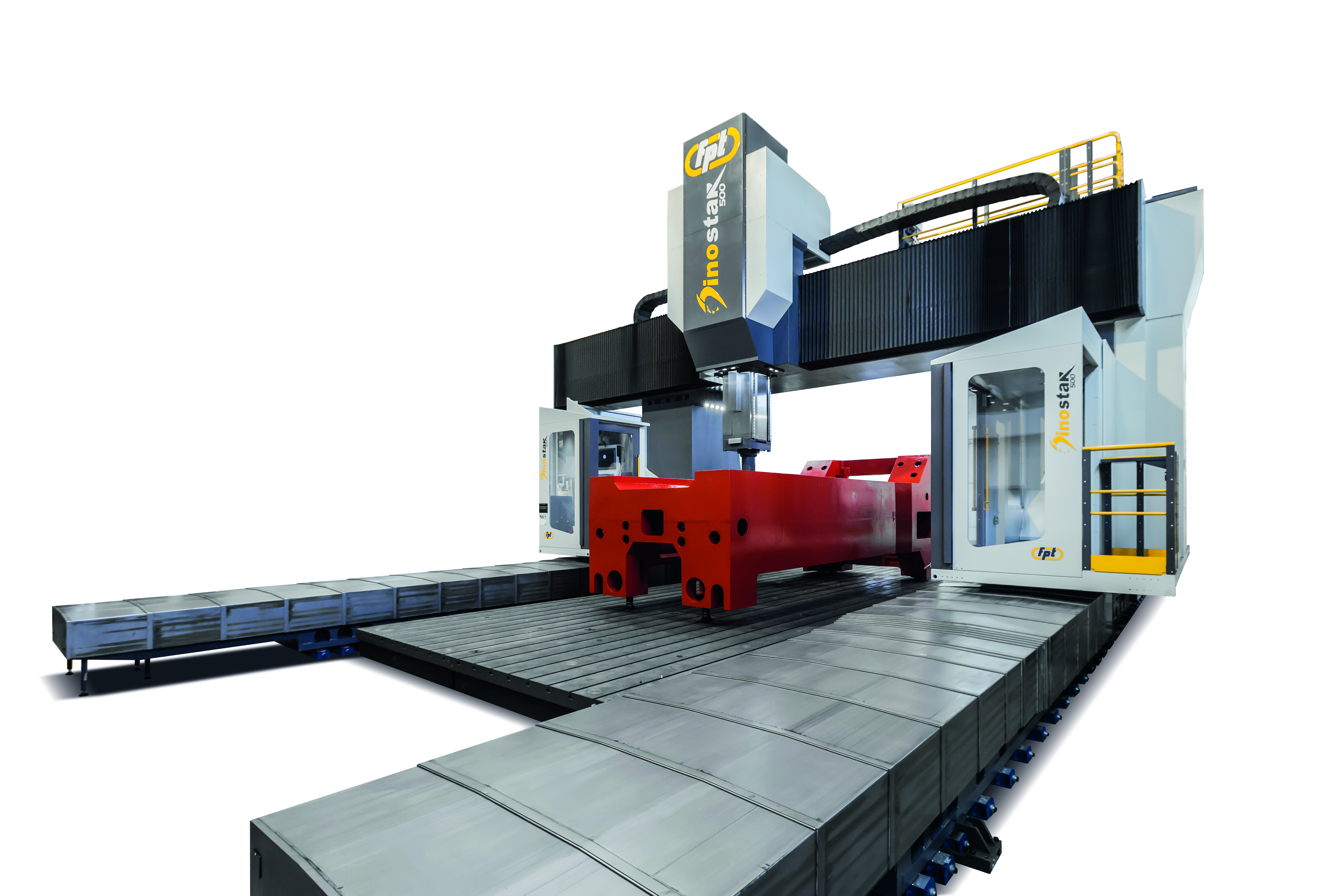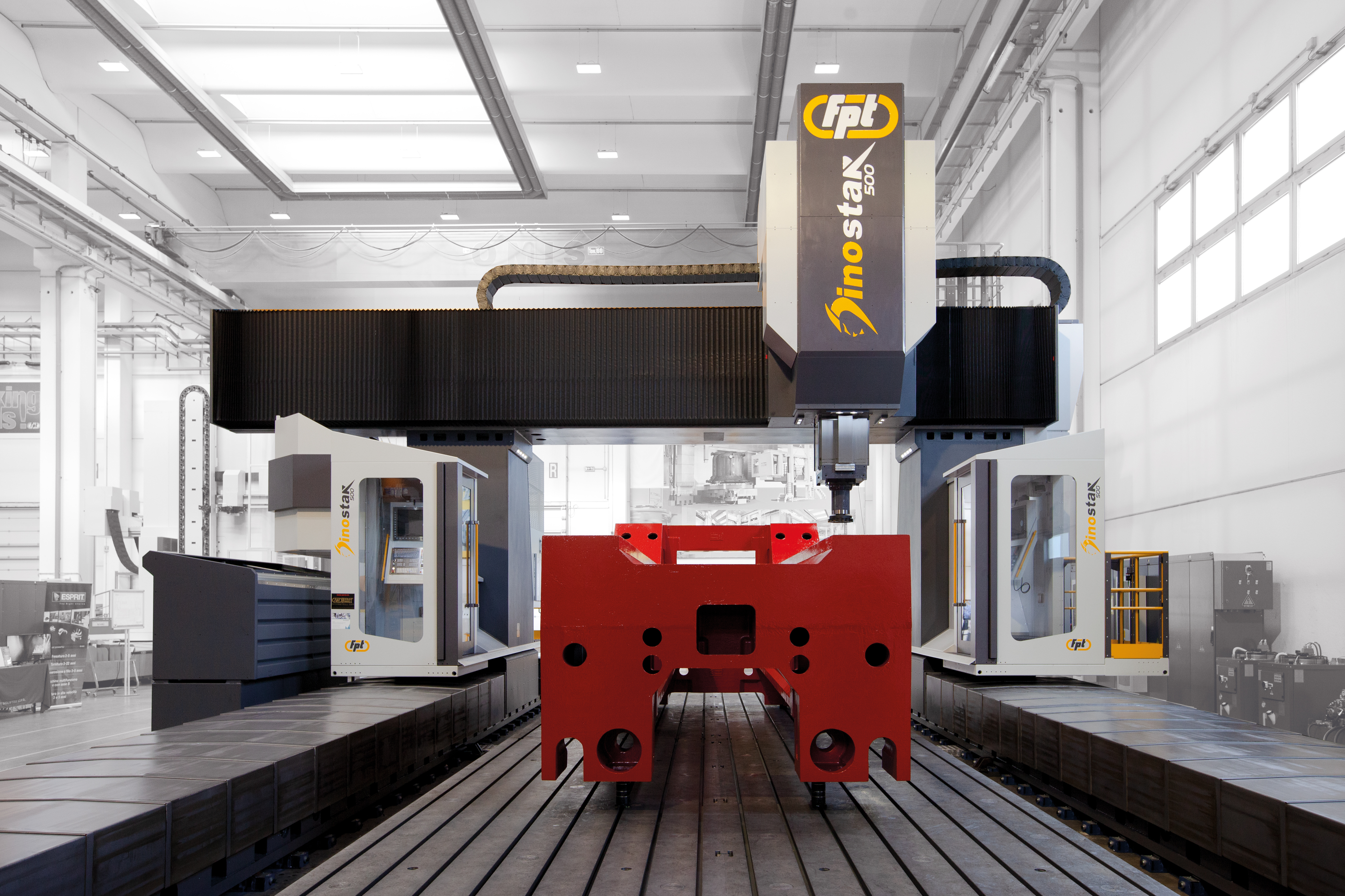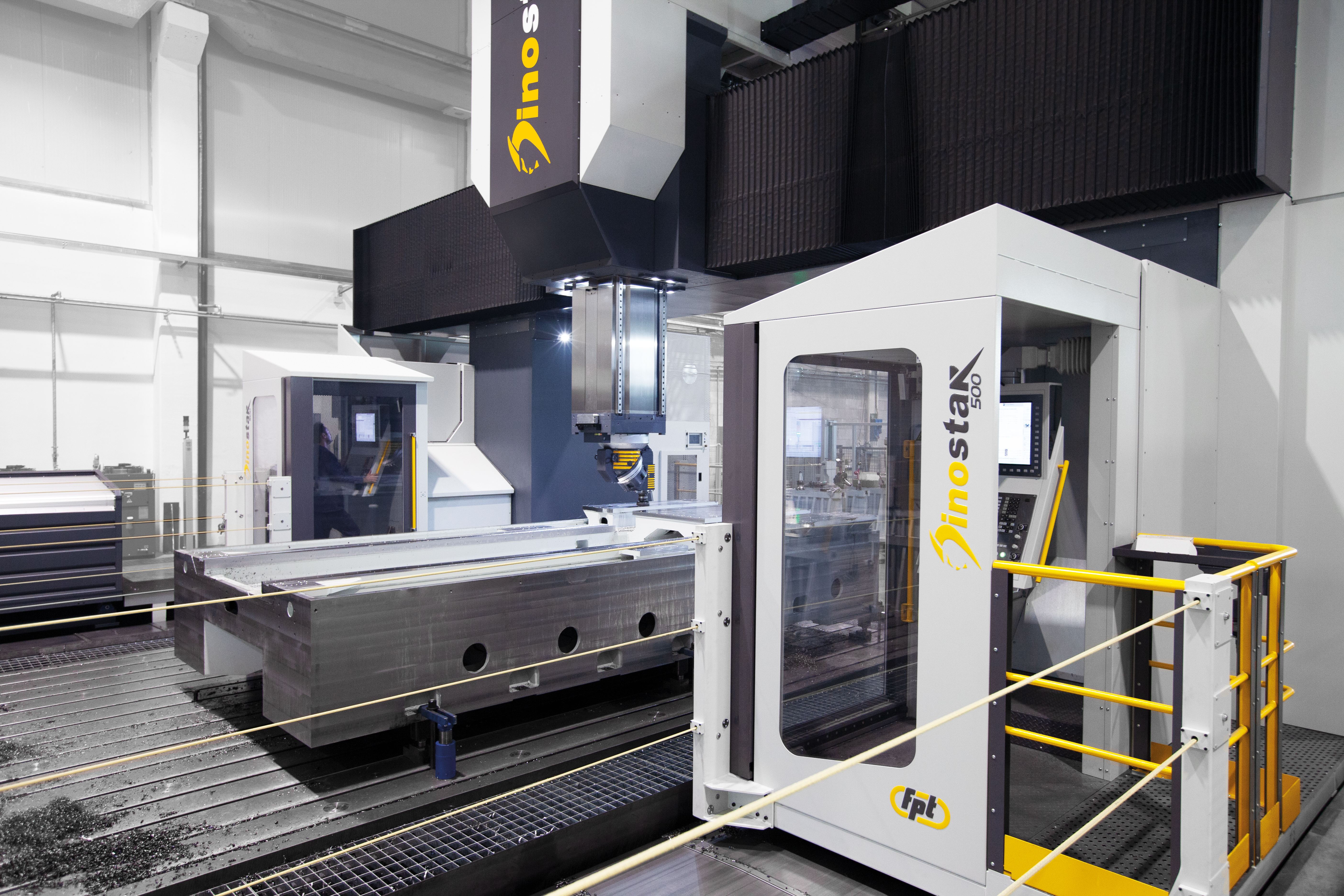 Dinostar is a high-capacity vertical milling machine designed for precision machining of very large components. Equipped with a gantry-type structure and advanced FEM-optimized cast-iron frames, Dinostar ensures maximum rigidity, vibration damping, and accuracy during the most demanding machining cycles. Ideal For |